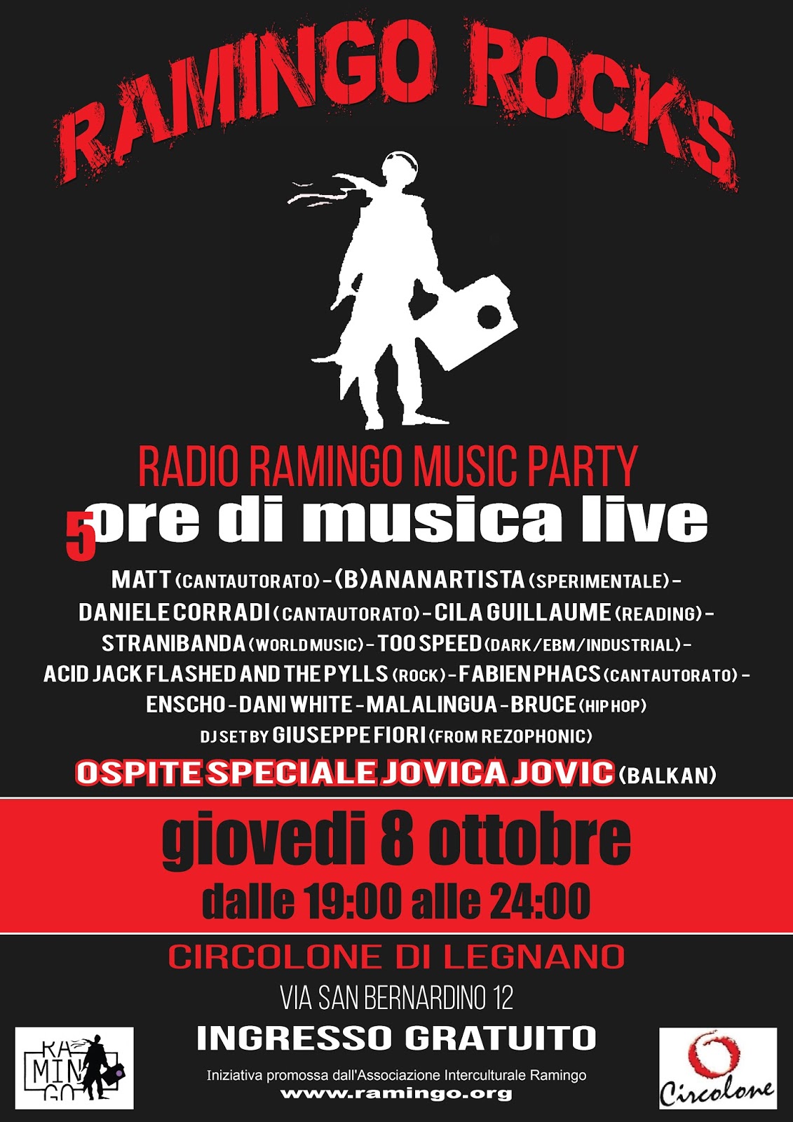 L’evento raccoglie tutti gli ospiti delle 12 puntate della scorsa stagione, per 5 ore di musica no-stop interamente dal vivo! Dal Rock al cantautorato, all’elettronica, alla world music, fino addirittura all’hip hop. Un evento unico dal cast eccezionale ad INGRESSO GRATUITO!!! Inoltre sarà in vendita in esclusiva la compilation con tutte le migliori esibizioni live degli artisti coinvolti, in un cd di 13 tracce al prezzo di lancio di 3 euro!!! E per accontentare davvero tutti la birra media sarà ad un prezzo speciale per tutta la durata dell’evento!!! Vi aspettiamo!